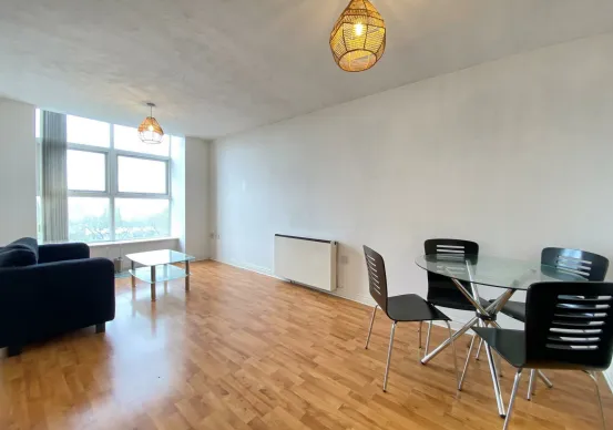 One-bedroom apartment located in a leasehold flat within Victoria Mill. The property is situated next to the Rochdale Canal. The internal fixtures, fittings, carpeting, and furnishings may vary.