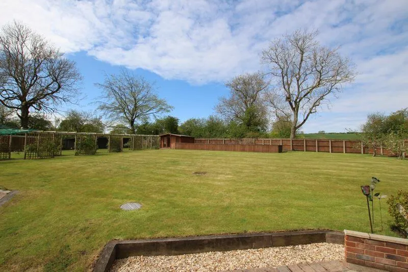 This property is a five-bedroom detached house situated on approximately two acres of land. It includes a separate one-bedroom bungalow, a four-car garage with a games room above, and various sheds/outbuildings. The main house features a reception hallway, cloakroom, playroom/study, living room, formal dining room, utility room, breakfast kitchen, family bathroom, and five bedrooms, two of which have ensuites. The property has gardens predominantly laid to lawn with patio areas and a fenced allotment area. There is a large gravelled driveway providing off-road parking with electronic gated access. The property is freehold.